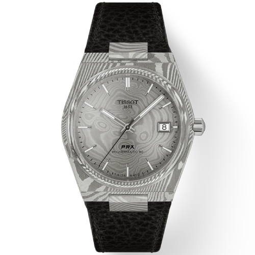 An icon reborn with cutting-edge material : marbled Damascus stainless-steel. If you’re looking for a slim, smooth watch with an authentic ‘70s feel, look no further than the PRX Powermatic 80. Created for those with an eye for design and packed with twenty-first century features in a Tissot case shape from 1978, the PRX is a must-have on every watch fan’s wish list. The self-winding Powermatic 80 movement delivers reliability and precision thanks to the innovative Nivachron hairspring. With 80 hours of power reserve, it’s a modern movement designed to keep pace with busy lifestyles. It is this special steel that gives the dial and case their marbled effect. The leather strap is interchangeable and easy to open.
